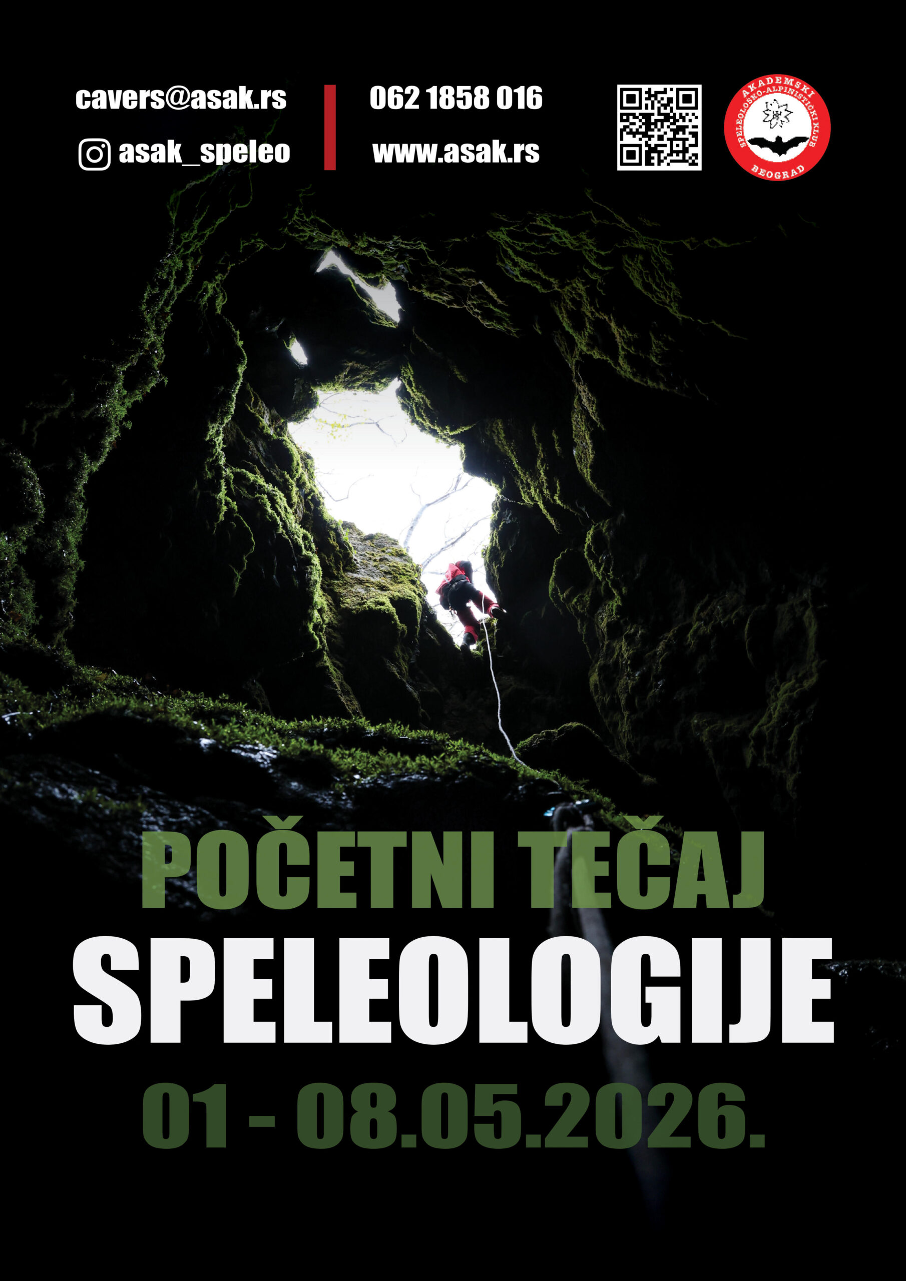 Mnogi su pitali, sad konačno i najavljujemo, da se Akademski speleološko-alpinistički klub (ASAK) iz Beograda, sprema za početni tečaj speleologije i prijem novih članova!